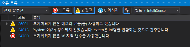 비주얼 스튜디오는 아래와 같은 오류 메시지를 출력합니다.